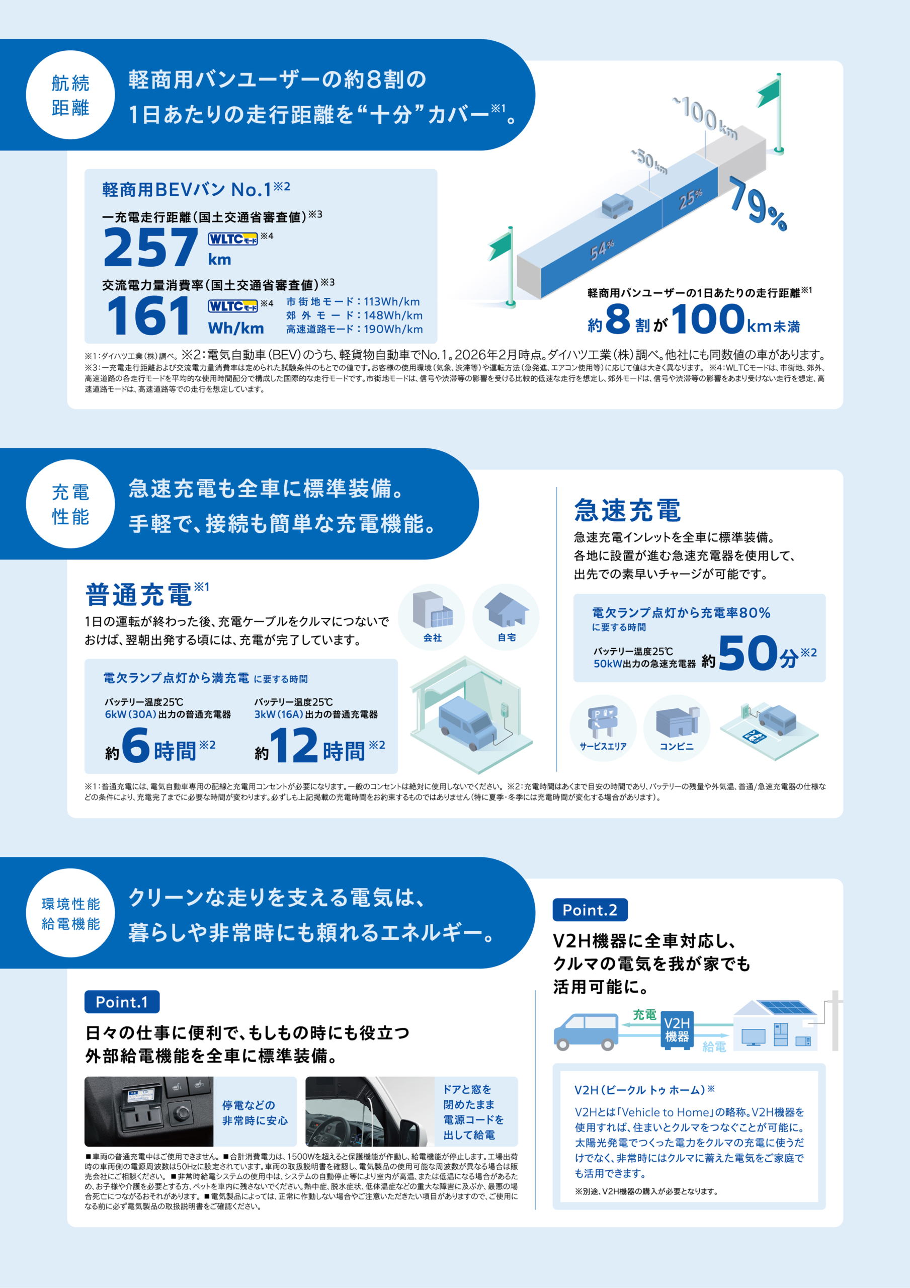 大容量バッテリーを搭載により軽商用BEVナンバーワンの航続距離を実現。
