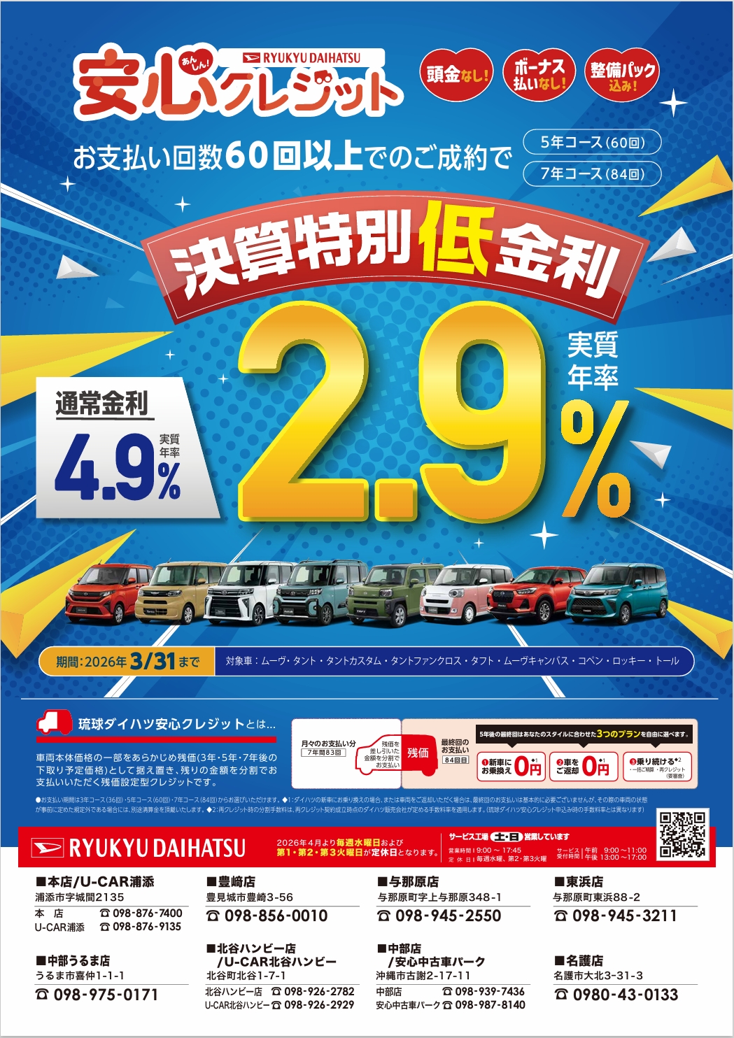 琉球ダイハツ安心クレジット支払回数[60回以上]でご成約いただくと